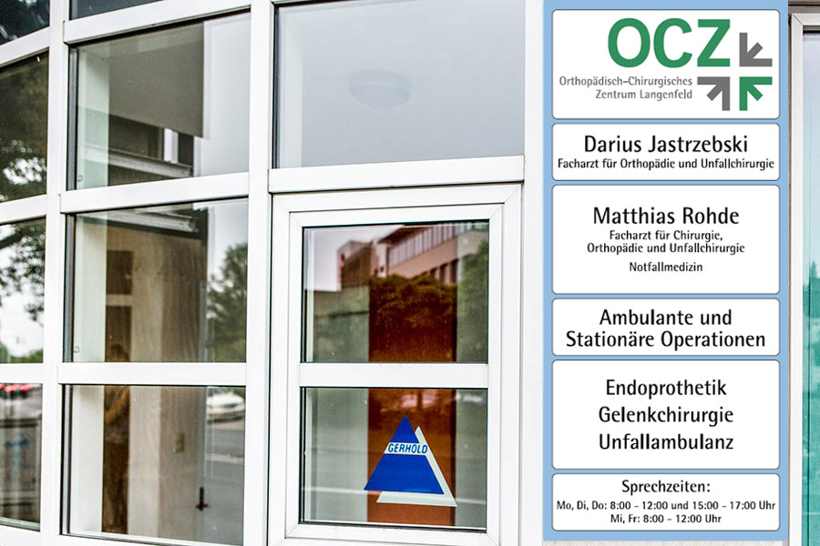 Unsere Praxis ist in zentraler Lage Langenfelds in unmittelbarer Nähe der Sparkasse und des Rathauses zu finden. Als orthopädisch-chirurgisches Zentrum (OCZ) sind wir in der Lage, sowohl Erkrankungen der chirurgischen als auch der orthopädischen Fachrichtungen an einem Ort zu versorgen. Wir führen ambulante und stationäre Behandlungen und Operationen beider Fachrichtungen durch. Unsere modernen Operations- und Behandlungsräume entsprechen dem neuesten Stand der Medizintechnik.